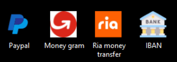 Paypal, Money gram, Ria money transfer, IBAN ili po dogovoru.